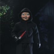 Dressed in tailored fabric clothing inspired by vintage toy lines, this fully articulated, 8-inch scale figure includes interchangeable masks, heads, hands, kitchen knives, baseball bat, sledgehammer, birthday cupcakes, and pistol. Comes in collector-friendly window box packaging.